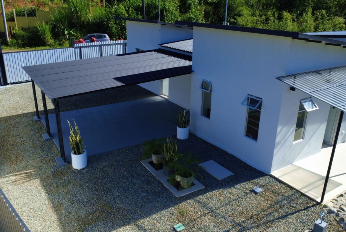 This brand new modern home for sale in Villa Nueva, Perez Zeledon, Costa Rica offers a functional layout, high-quality construction, and a distinctive indoor swimming pool with an opening rooftop, allowing natural light and ventilation. Located in a quiet residential area, the property is just minutes from San Isidro del General and all essential amenities, making it ideal for full-time living or as a Costa Rica real estate investment in Villa Nueva, Perez Zeledon.