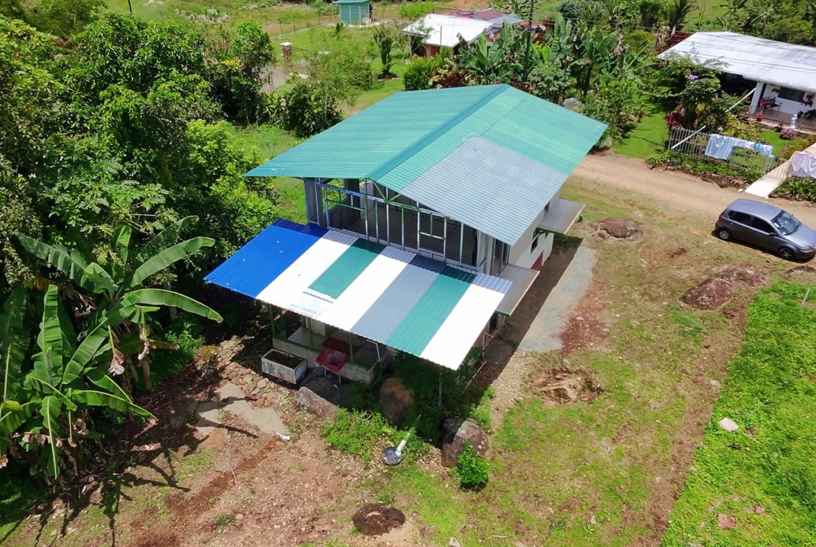 The property features a spacious backyard and is located in a serene neighborhood surrounded by lush greenery and a welcoming community. Its convenient location makes it attractive for both families and investors, with schools, small shops, Kinkara, and the Rise Community nearby, and downtown Pérez Zeledón less than 30 minutes away.