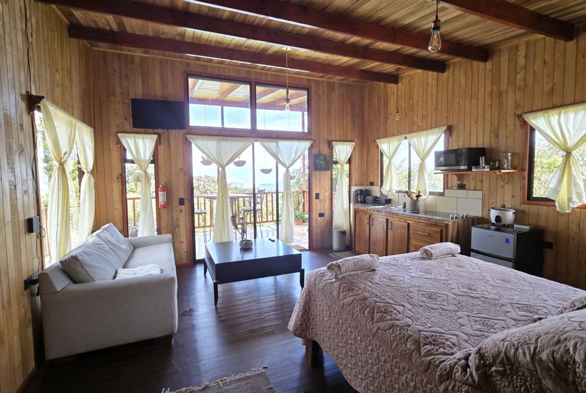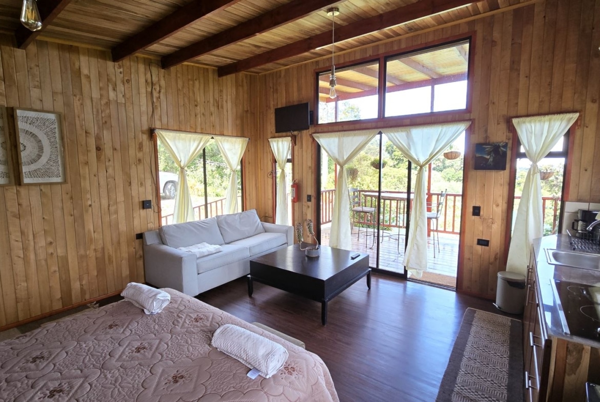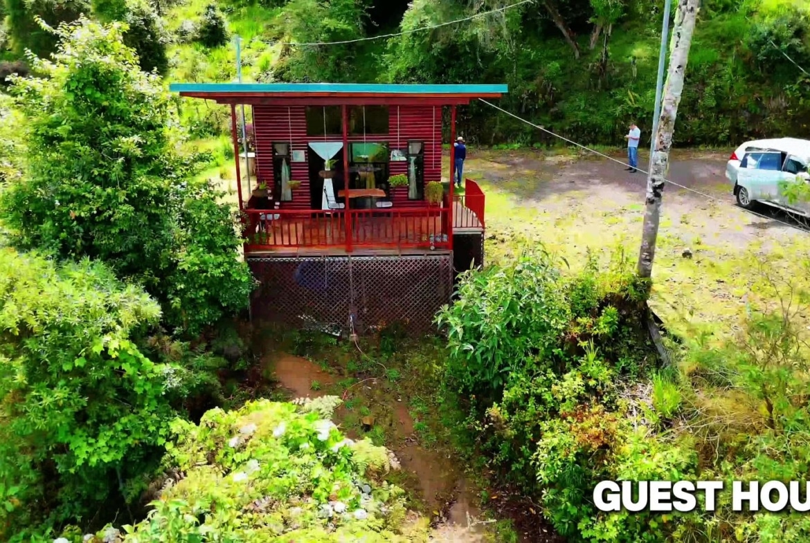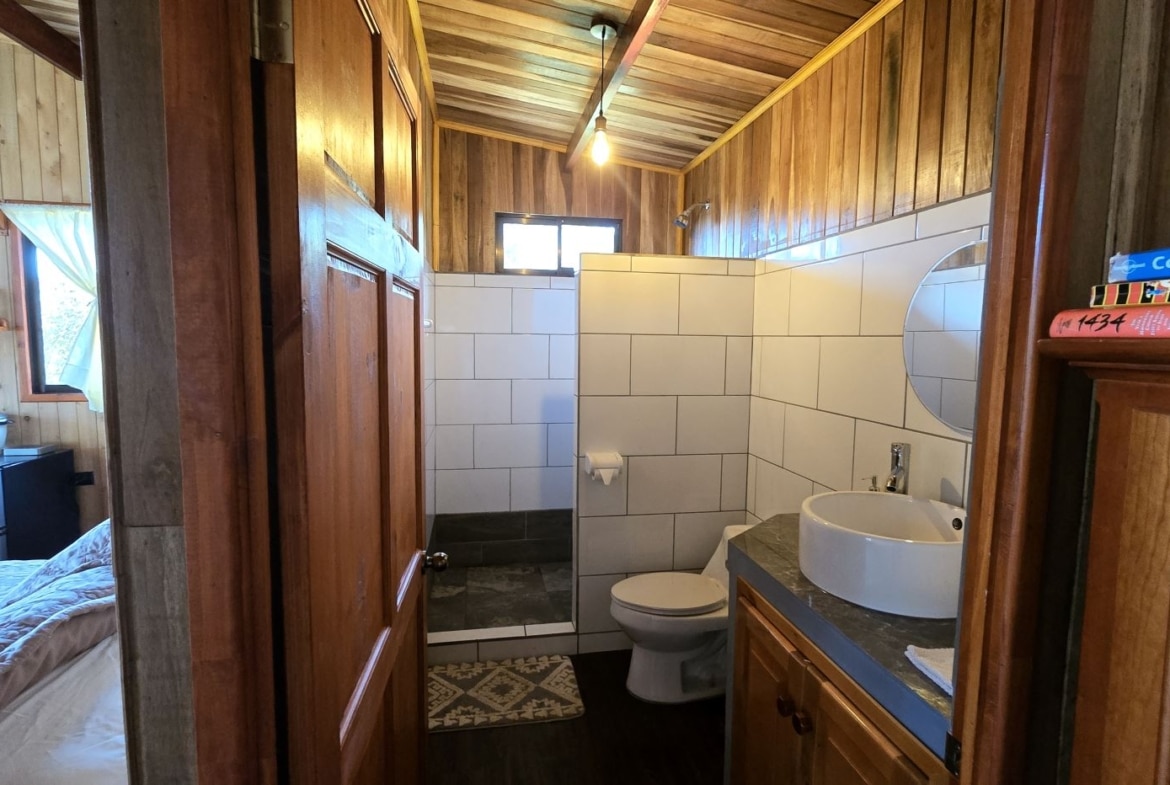 -Guest House: A charming retreat with sleeping area, kitchenette, and full bathroom. Already a successful rental known as Casa Tigre on Airbnb with a 5.0-star rating, it is ideal for hosting visitors or generating steady income. Guests enjoy a private balcony overlooking lush greenery and vibrant wildlife.