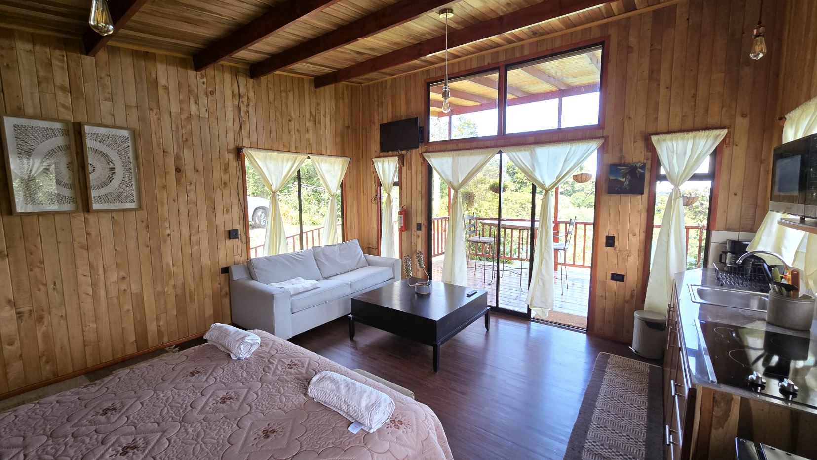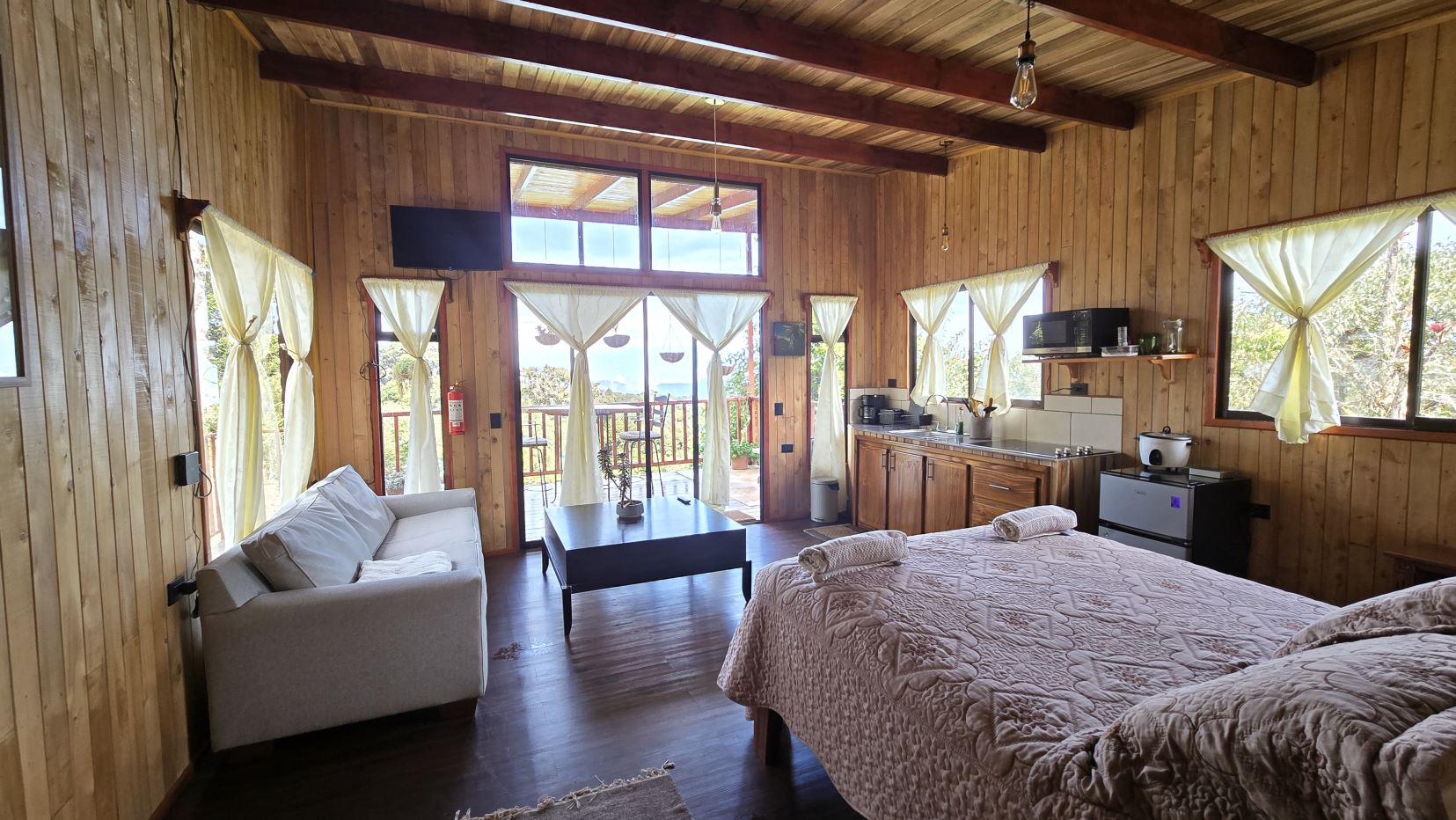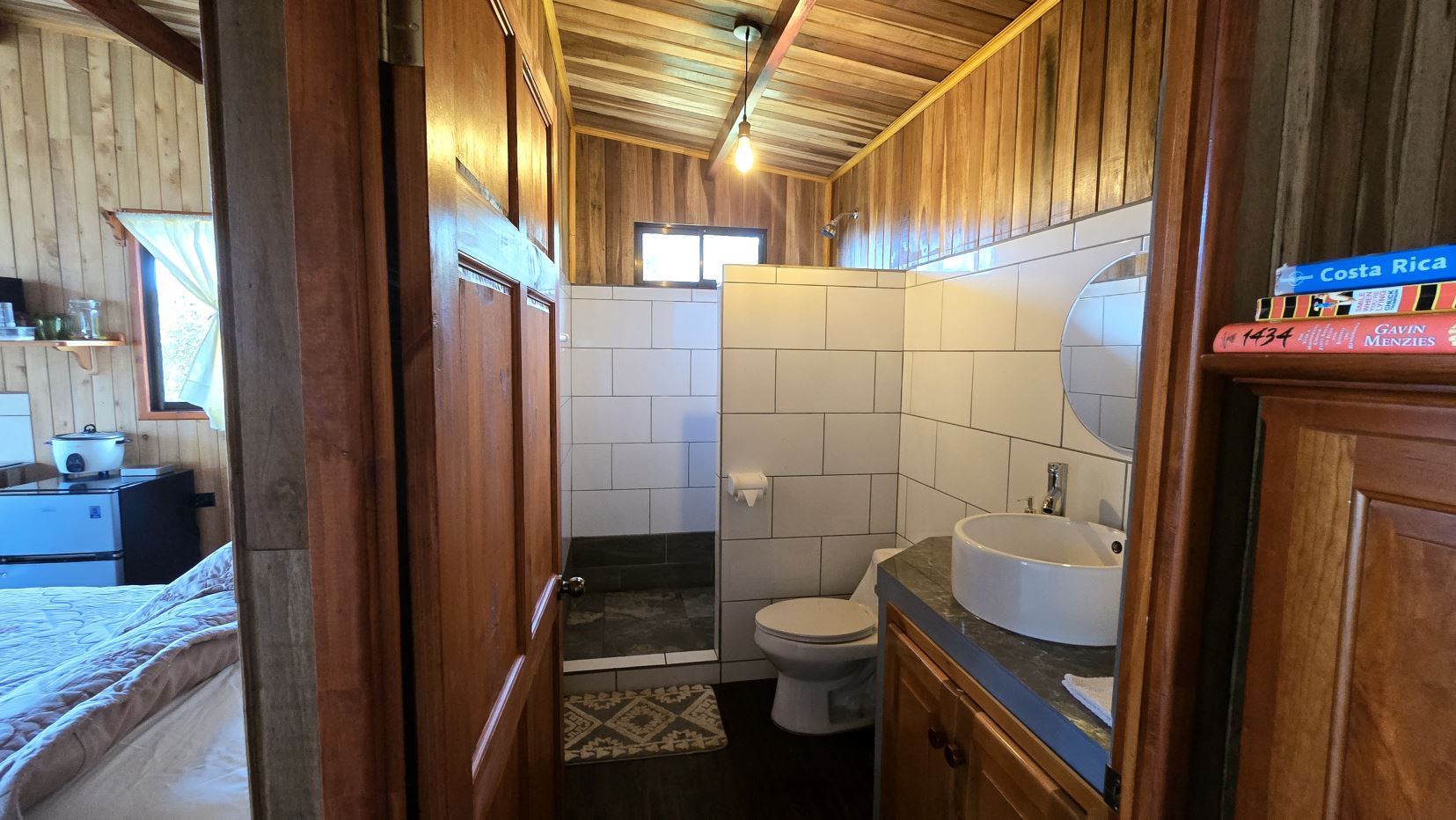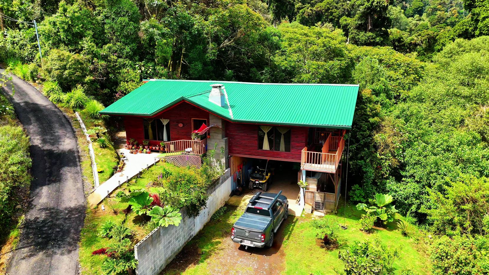 -Guest House: A charming retreat with sleeping area, kitchenette, and full bathroom. Already a successful rental known as Casa Tigre on Airbnb with a 5.0-star rating, it is ideal for hosting visitors or generating steady income. Guests enjoy a private balcony overlooking lush greenery and vibrant wildlife.