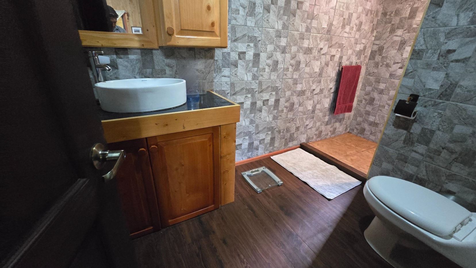 -Main House: Two cozy bedrooms (including a master suite), stylish guest bathroom, and an inviting living room with a fireplace perfect for mountain evenings. The modern kitchen comes with a refrigerator, dishwasher, oven, washing machine, and dryer. A spacious balcony offers sweeping forest views, while a discreet emergency exit connects directly to the two-car garage and laundry/utility room.