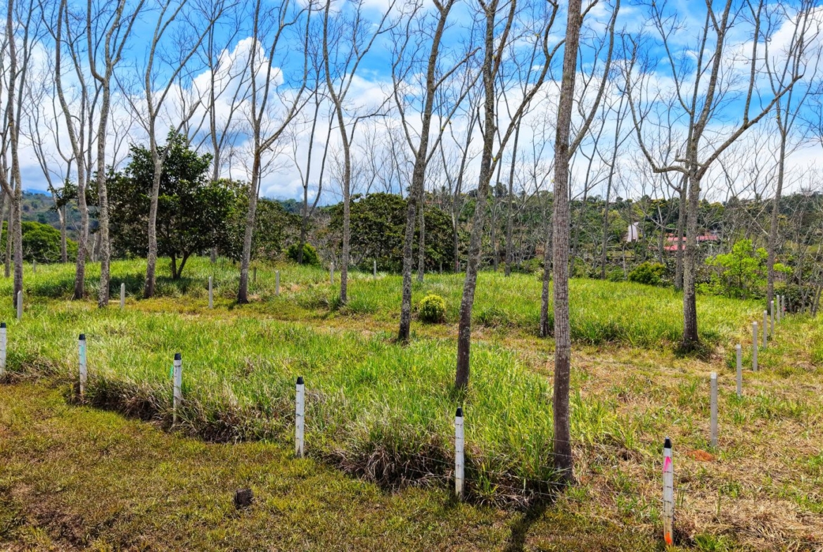 1,914 m² lot in Santa Rosa, Perez Zeledon, Costa Rica, just 200m from paved road and under 15 minutes to the city. Flat building area with creek at the back, no nearby neighbors, and ready to build with water installed and electricity almost in place.
