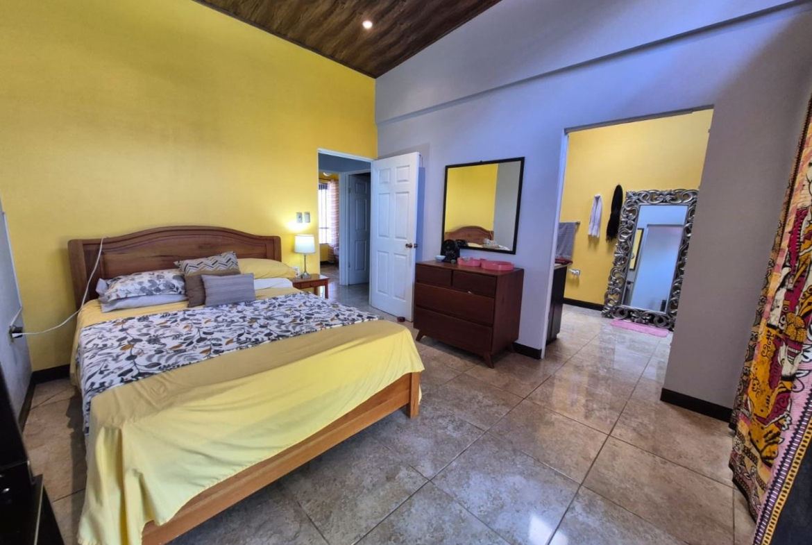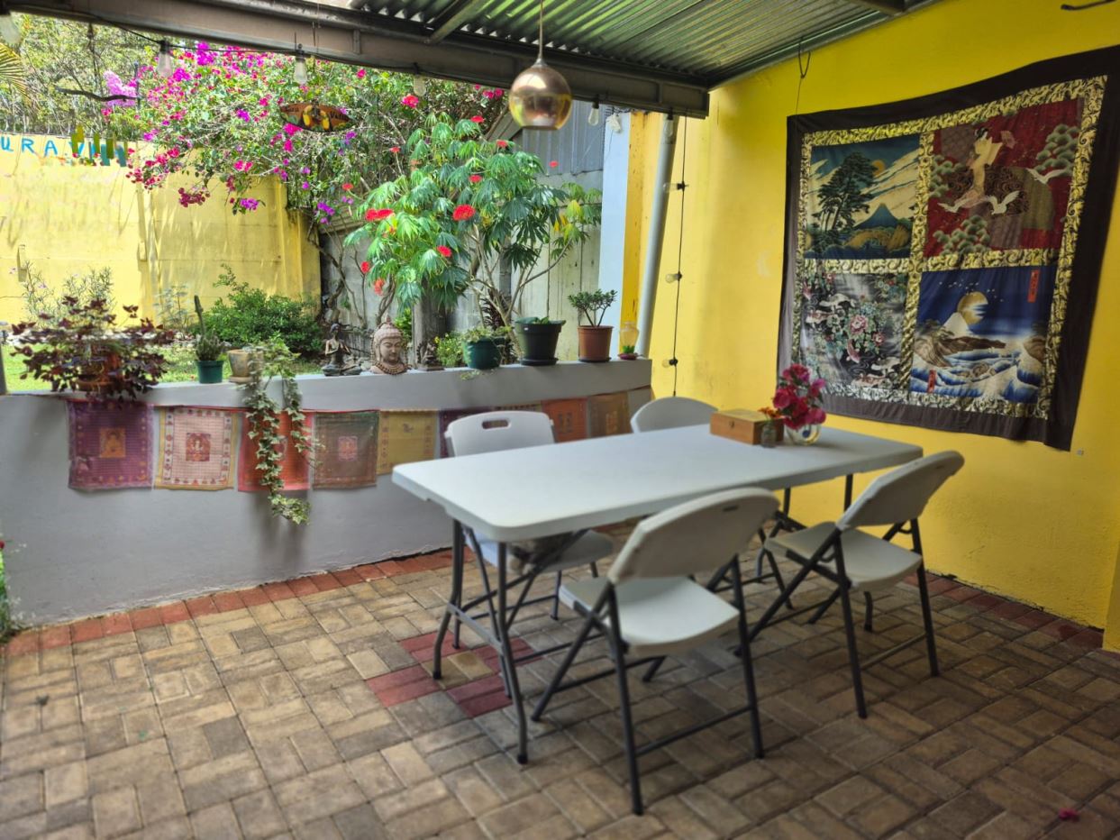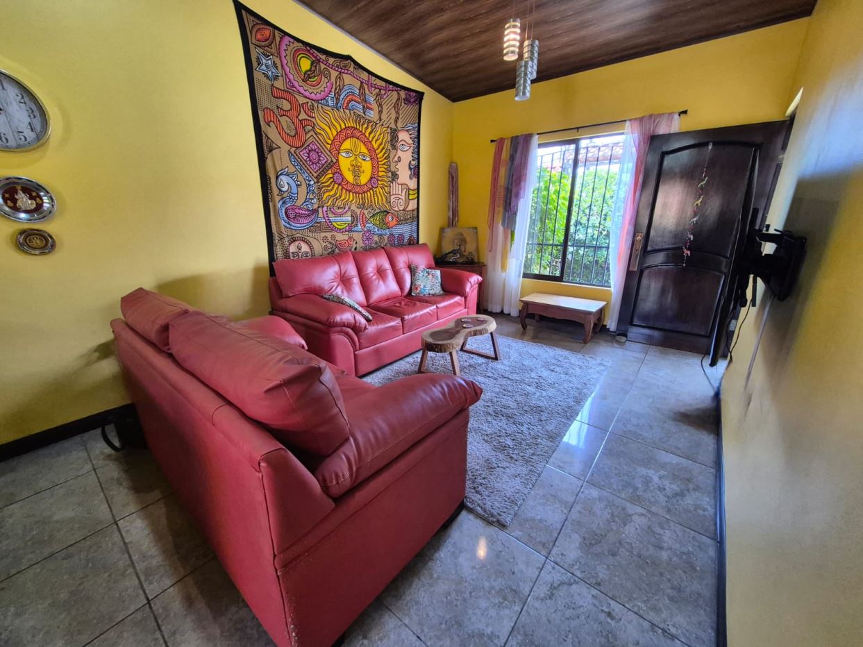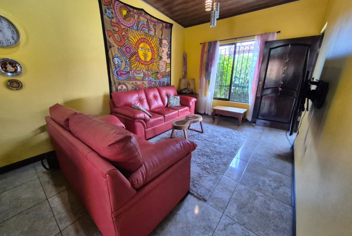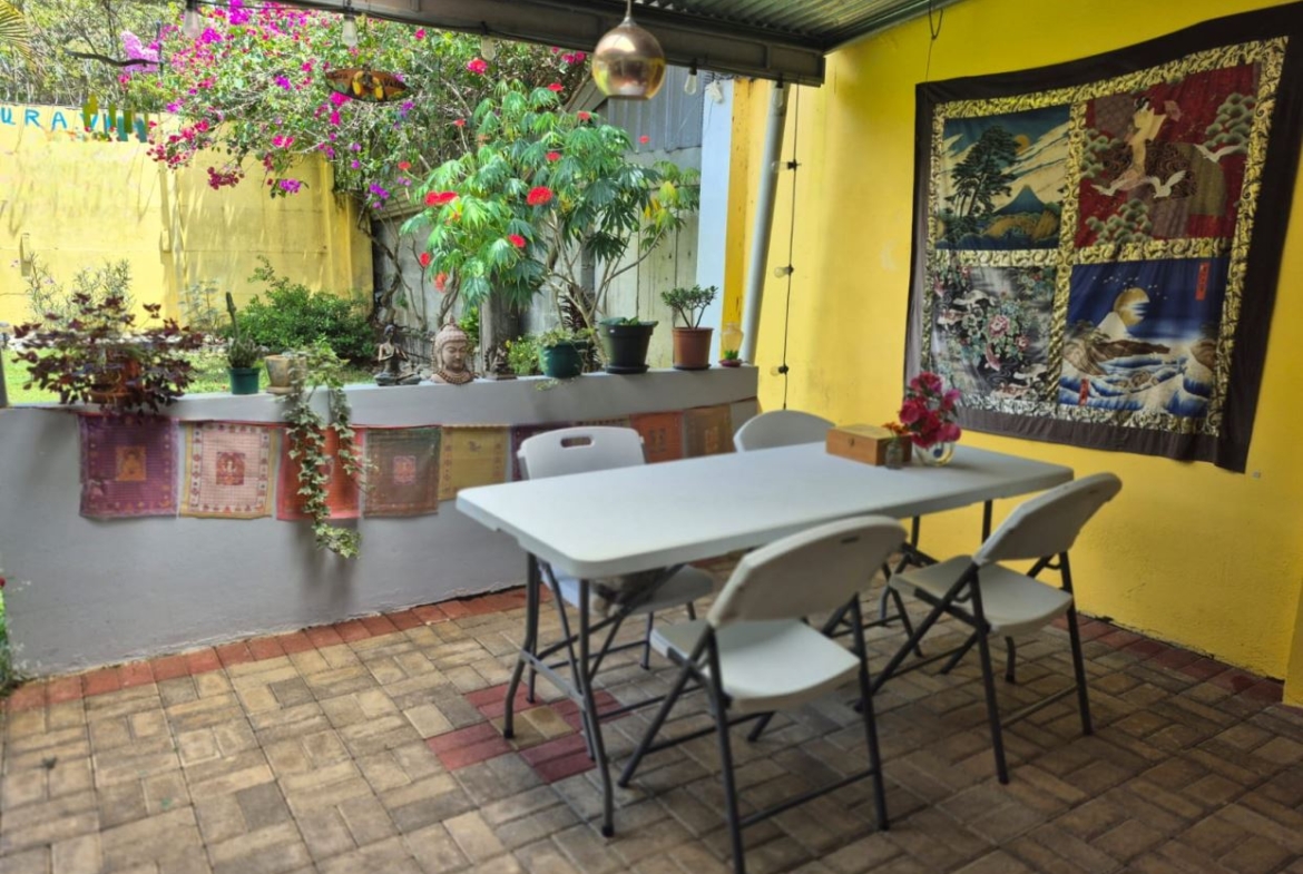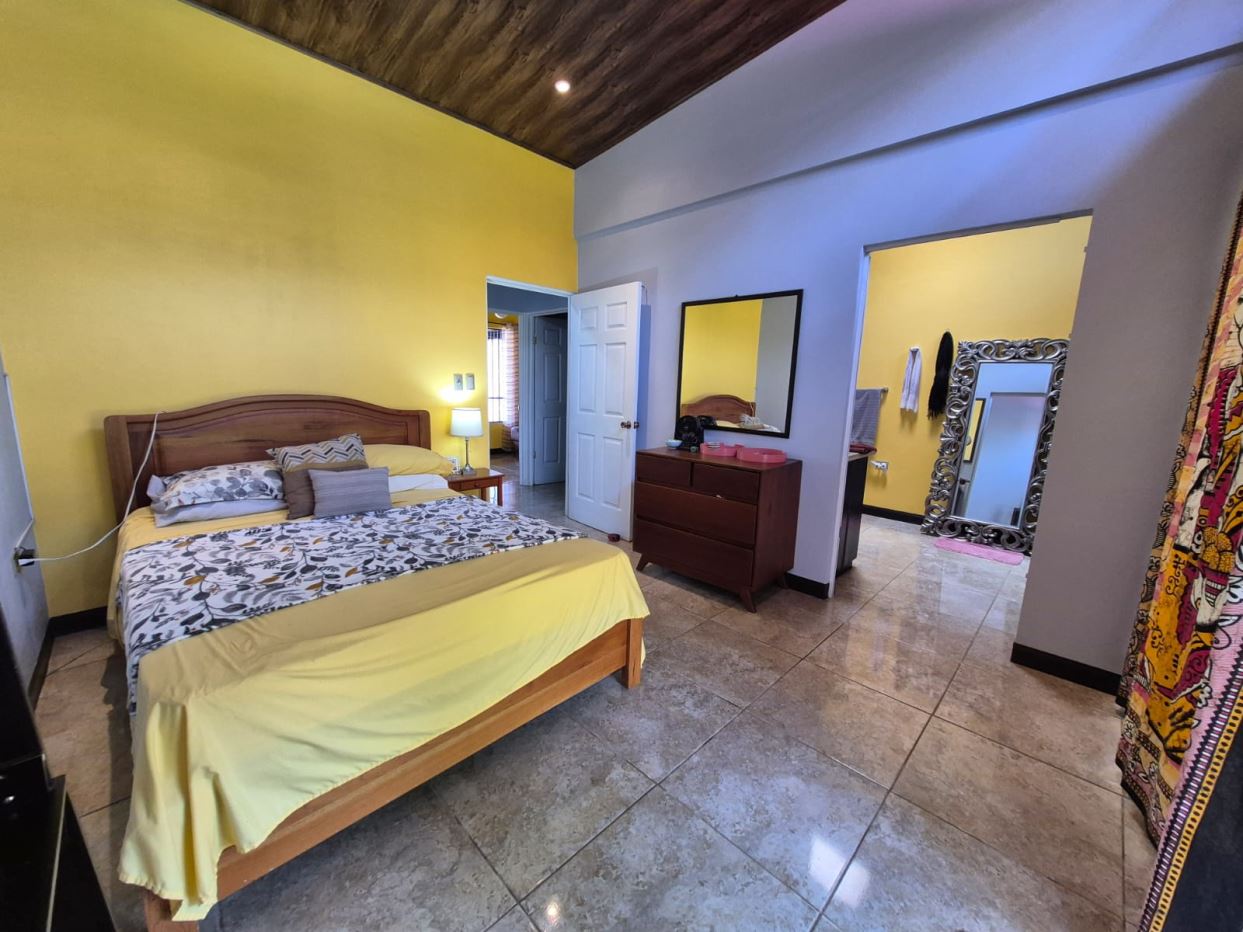 Nestled in the peaceful Halder Neighborhood of Daniel Flores, Pérez Zeledón, this charming home offers the perfect combination of privacy and convenience. With a lush forest preserve as its backyard, you’ll enjoy a serene setting while still being close to shopping centers like Walmart and public transportation. Inside, the house features an open-concept layout with high-ceilings that enhance the spacious feel and help maintain a pleasant indoor climate. The fully furnished interior includes a stylish kitchen with granite countertops, custom wood cabinetry, and modern stainless steel appliances. The inviting living area is tastefully decorated, with comfortable seating and large windows that fill the space with natural light. The master suite is a private retreat, boasting a walk-in closet and an en-suite bathroom. A covered terrace, currently used as a creative space for painting, overlooks a beautifully landscaped garden where butterflies flutter throughout the day.