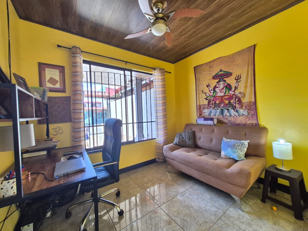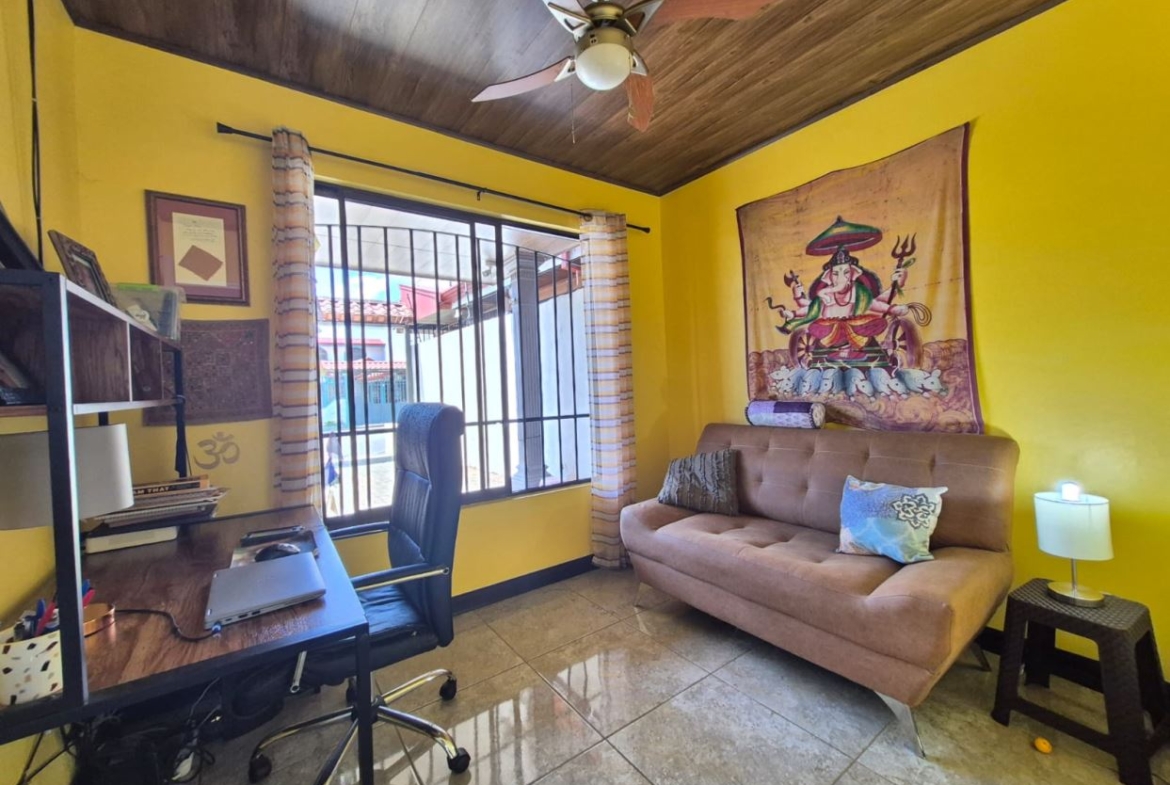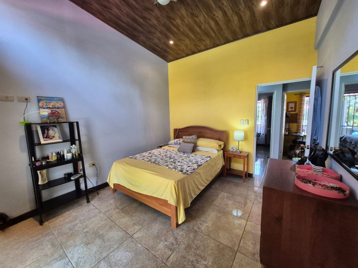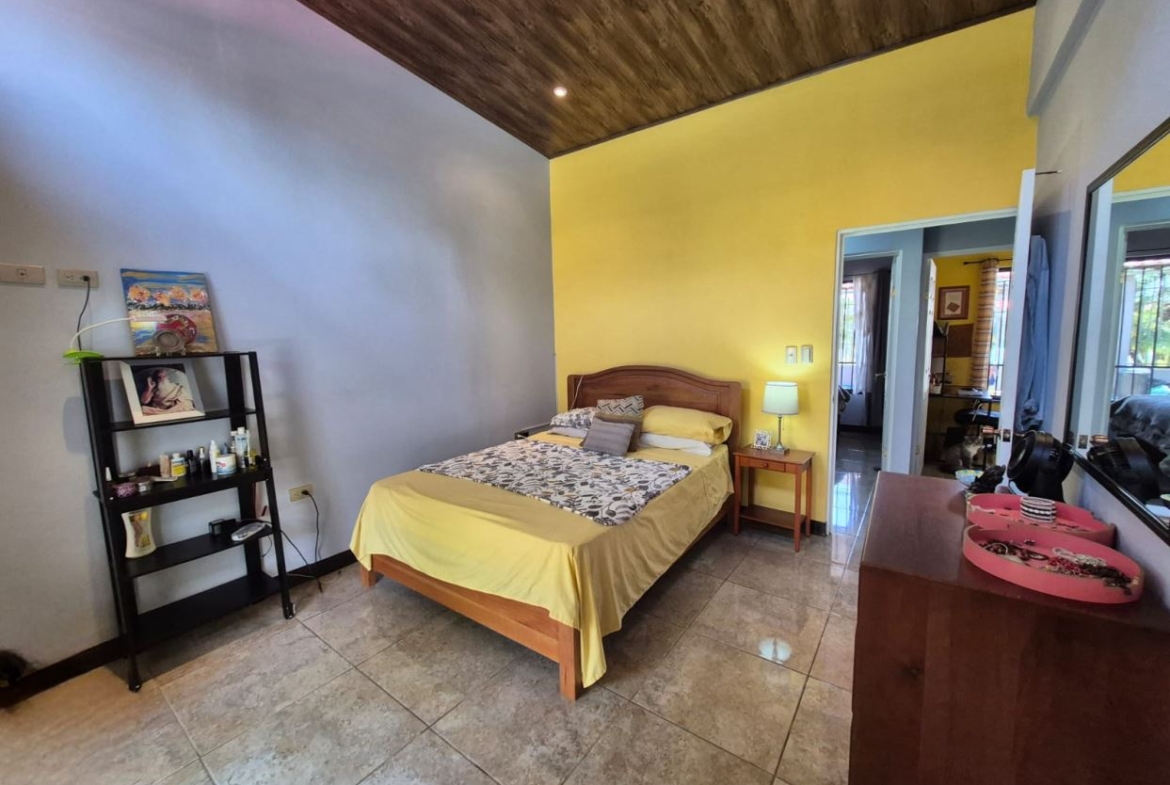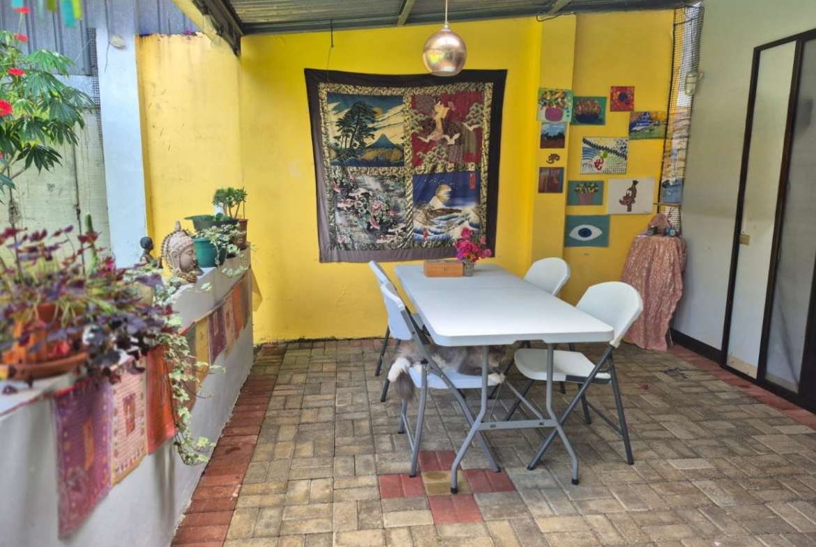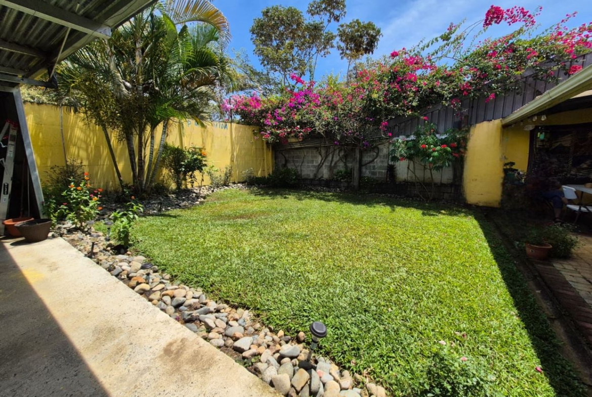Nestled in the peaceful Halder Neighborhood of Daniel Flores, Pérez Zeledón, this charming home offers the perfect combination of privacy and convenience. With a lush forest preserve as its backyard, you’ll enjoy a serene setting while still being close to shopping centers like Walmart and public transportation. Inside, the house features an open-concept layout with high-ceilings that enhance the spacious feel and help maintain a pleasant indoor climate. The fully furnished interior includes a stylish kitchen with granite countertops, custom wood cabinetry, and modern stainless steel appliances. The inviting living area is tastefully decorated, with comfortable seating and large windows that fill the space with natural light. The master suite is a private retreat, boasting a walk-in closet and an en-suite bathroom. A covered terrace, currently used as a creative space for painting, overlooks a beautifully landscaped garden where butterflies flutter throughout the day.